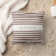 Custom Modern Brown Striped Pattern Name Throw Pillow.