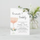 Modern foliage and champagne glass brunch and bubbly bridal shower invitation featuring a small floral arrangement and modern handwritten style text.