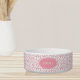 This modern pink and white brush heart pattern pet bowl can be personalised with a name or monogram. Great for a cat or dog.