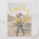A modern, bold and elegant wedding invitation with custom names with a hand written marker brushed calligraphy in real gold foil on white. All the text, names and background colours are customisable. A simple and minimalist invitation. Add 2 of your photos with a white overlay.