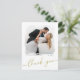 Modern Brush Photo Gold Script Wedding Thank You Postcard