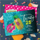 Modern And Bold Twenty 25 (2025) Neon Yellow And Aqua Blue Brush Script New Year Greeting Photo Holiday Flat Card.