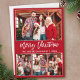 Modern Brush Script 4 Photo Family Photo Collage Merry Christmas Holiday Card - Red