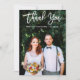 Modern Brush Script Bride and Groom Wedding Photo Thank You Card - White Script, Top of Card
