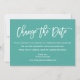 Modern Brush Script Change The Date Teal Card