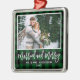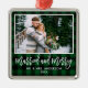 Modern Brush Script, Rustic Green Plaid Married and Merry Wedding Photo Ornament