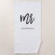 This stylish beach towel says "Mr." in trendy black script typography on a white background, and also has a spot for your last name. You can change the background colour to anything you wish.