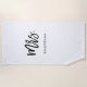 This stylish beach towel says "Mrs." in trendy black script typography on a white background, and also has a spot for your last name. You can change the background colour to anything you wish.
