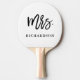 This stylish ping pong paddle says "Mrs." in trendy black script typography, and also has a spot for your last name.