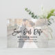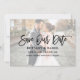Modern Brush Script Save Our Date Engagement Announcement Card with Photo Overlay - Photo Front and Photo Back