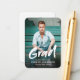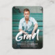 Modern brush script mini size Graduation Announcement with photo in charcoal black, simple and unique. Custom it with your own photos and grad party information.