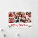 Modern Brush Script 5 Photo Family Photo Collage Merry Christmas Card includes Watercolor Christmas Holly Berries - Red Script