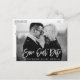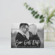 Modern Brush Script Save Our Date Engagement Couple Photo Postcard - Black and White Photo