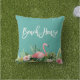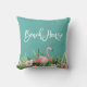 Modern Brush Script, Watercolor Tropical Floral with Pink Flamingo Beach House Throw Pillow
