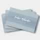 These modern and professional business cards feature a sheer, soft dusty blue watercolor brush stroke on a matching background. Your name appears in bold, modern white script.