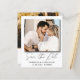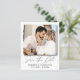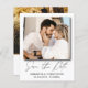 Elegant and chic save our date announcement. This template features space for 2 of your favourite couples photos, for front and back of card, in white with cool hand written calligraphy in gold. Easy to edit with your own unique details.