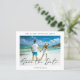 This is a modern and budget friendly wedding save the date card using a beautiful calligraphy style font along with a minimalist photo design, printed on a paper sheet.