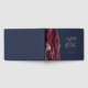 This elegant wedding guest book features a burgundy red watercolor agate design trimmed with faux gold glitter. Easily customise the gold-coloured text on a navy blue background, with the names of the bride and groom in whimsical handwriting calligraphy over a large ampersand. Add additional text of your choice to the front and spine.
