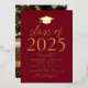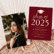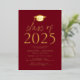 Invite guests to celebrate the grad with our modern class of 2025 graduation party invites. The invites feature a graduation cap at the top with "Class of 2025" displayed in gold foil lettering with a burgundy background. Personalise the invites by adding the graduate's name, school, and graduation party details. The gold foil graduation party invites reverse to display the graduate's photo.