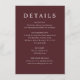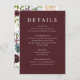 Modern Burgundy Dusty Blue Floral Wedding Details Enclosure Card