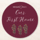 This coaster features a rich burgundy background & a beautiful, multi-colored tree that exudes warmth and sophistication. It combines contemporary design with timeless charm and is perfect for welcoming friends and family to your first home. Fully customizable with your details, it's ideal for housewarming parties, casual gatherings, or milestone celebrations.
