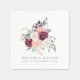 Modern Burgundy Floral Watercolor Ivory White Wedding Napkins. Beautiful napkins feauring grey text adorned with a digitally adjusted print of hand-painted watercolor floral arrangement in shades of blush pink, cream, blue, burgundy, and rose gold on ivory white. Personalise with Bride and groom's name and the wedding date. Excellent for weddings, engagements, anniversaries and other special occassions We invite you to visit our store, Austen & Grace, to view matching products and our growing designer ranges. Contact us if you require extra matching products or any assistance via the contact button or email directly at contact@austenandgrace.com