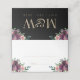 Modern Burgundy Floral Monogram Black Wedding Place Card