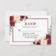 Modern Elegant Watercolor Burgundy Floral Wedding RSVP Card includes burgundy roses, pink roses and botanical greenery.