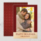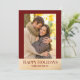 Send your love in style with this festive photo holiday card featuring a deep red border, faux gold foil accents, and a modern serif “Happy Holidays” greeting. The customisable text below the photo allows you to add your names or a short message, making it a beautiful keepsake for friends and family. The back of the card features a coordinating red background with gold polka dots for an extra festive touch. Perfect for couples, families, or newlyweds sharing holiday joy.