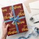 Modern Burgundy Gold Merry Christmas Pattern Wrapping Paper