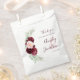 Thank your guests with these elegant modern wedding favour bags, featuring a watercolor floral bouquet of burgundy and blush flowers and eucalyptus greenery on the left side, and stylish script ampersand with the names of the bride and groom on the right. Find matching products in the collection, or message me through Zazzle Chat for more products or different colorways.