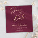 Crafted with a trendy minimal design, this Modern Burgundy Minimalist Elegant Wedding Save the Date exudes sophistication while maintaining a stylish appeal. The deep burgundy hue adds a dash of luxury and high-end ambience, perfect for a fall wedding theme. Each card features exquisite calligraphy script for an extra touch of class. Keep your wedding announcements minimal yet impactful with our minimalistic yet striking design, ideal for couples who appreciate clean lines and a refined aesthetic.