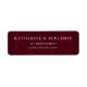 Modern wedding return address labels featuring minimalist typography in burgundy red color design.
