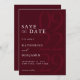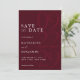 Easily personalize your wedding save the date cards with this editable template. Features minimal elegant typography design in burgundy color.