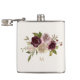 Modern Burgundy Pink Floral Watercolor Monogram Hip Flask