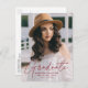 Invite guests to celebrate the grad with our stylish photo graduation invitation postcards. The graduation invitations feature the graduate's vertical photo with "Graduate" in a burgundy modern calligraphy script overlay. Personalise the front of the modern graduation invite by adding the graduate's name, school name, and graduation year. The graduation postcard reverses to display your return address and graduation party details.