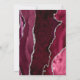 The left-hand edge of this elegant modern wedding invitation features a burgundy watercolor agate border trimmed with silver faux glitter. The customisable text combines handwriting, copperplate and italic fonts in white on a dusty blue background. The reverse side features a matching burgundy and silver agate design.