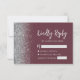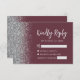 Modern Burgundy Silver Glitter Edge Script RSVP Card