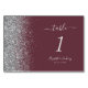 Modern Burgundy Silver Glitter Edge Wedding Table Number