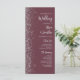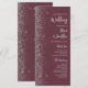 The left-hand edge of this elegant modern wedding program features a silver faux glitter design. The customisable text combines silver grey handwriting script and sans serif font on a dark burgundy background.
