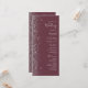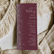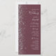 The left-hand edge of this elegant modern wedding program features a silver faux glitter design. The customizable text combines silver gray handwriting, copperplate and italic fonts on a burgundy background.