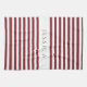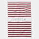 Modern Burgundy Striped Pattern Name Tea Towel