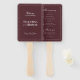 Keep your guests cool and informed with this elegant Modern Burgundy Wedding Program Hand Fan. Featuring a clean minimalist layout paired with rich burgundy tones, this hand fan beautifully blends modern sophistication with timeless romance. It’s the perfect way to display your ceremony details, wedding party, and order of events while adding a stylish and practical touch to your special day.
