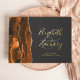 Modern Burnt Orange Agate Gold Script Dark Guest Book