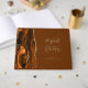 This elegant wedding guest book features a watercolor agate design in shades of rust and burnt orange, trimmed with faux gold glitter. Easily customise the gold-coloured text on a nutmeg brown background, with the names of the bride and groom in whimsical handwriting calligraphy over a large ampersand. Add additional text of your choice to the front and spine.