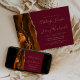 The left-hand edge of this elegant modern wedding invitation features a burnt orange and rust watercolor agate border trimmed with faux gold glitter. The customisable text combines gold-coloured handwriting, copperplate and italic fonts on a burgundy background. The reverse side features a matching burnt orange and gold agate design.