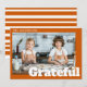 The design features modern bold text that reads "Grateful" with custom family name template in elegant handwritten script. The burnt colour with bold white stripes adds a touch of warmth and festivity, making it a perfect keepsake for your loved ones.