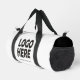 This modern black and white duffle bag is perfect for businesses looking to promote their brand. You can customise it with your own logo and text, giving it a personal touch that stands out. Plus, the text size can be modified to meet your exact requirements, making it an ideal option for any branding or promotional event you might have in mind.