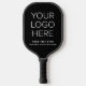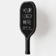 Modern black pickleball paddle. Add a business, club or team logo, design or photo, and one or two lines of text (e.g., company, league, club, team or personal name, tagline, slogan, phone, etc.) in simple white typography, and select your handle colours. You can reduce the cost of the paddle by deleting the logo, text and background colour on one side of the paddle, and change the colours of the background and text by selecting to edit in the design tool.