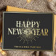 Modern Business Happy New Year Logo | Black Gold Foil Holiday Postcard